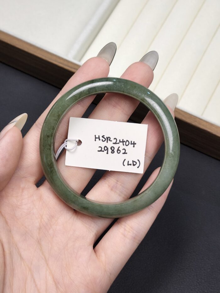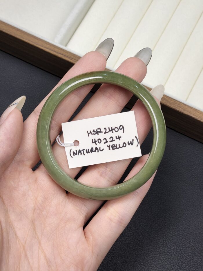 Size 50.8 Dark Sage Green with Olive Yellow Burmese Jade Bangle (DZ0228)