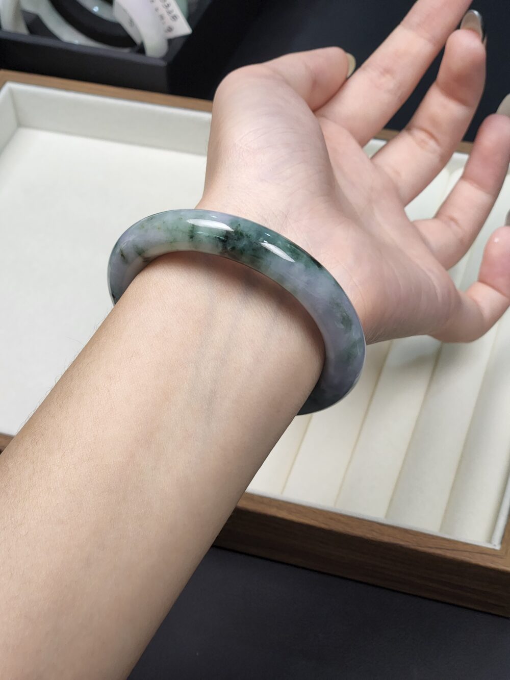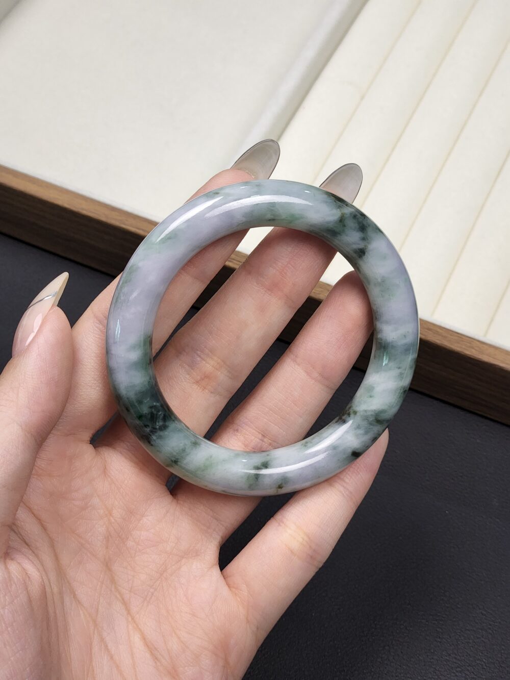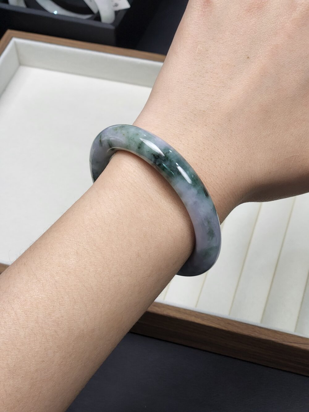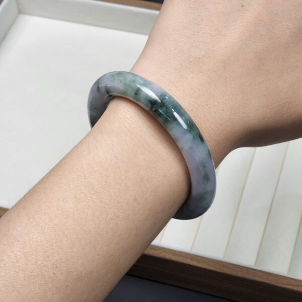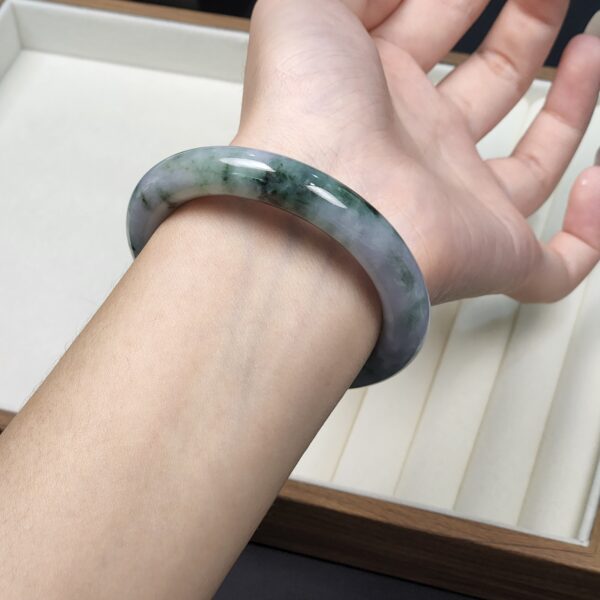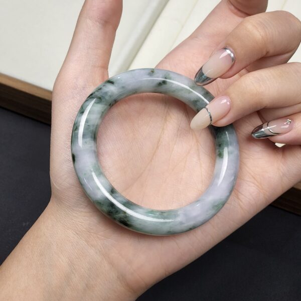Mineral: Natural Type A Jadeite Bangle (Untreated & Undyed) + Contains other natural mineral known as Amphibole