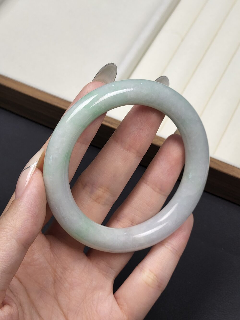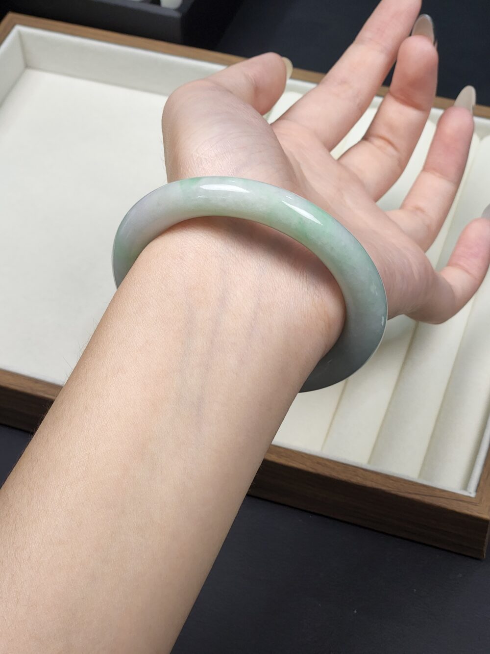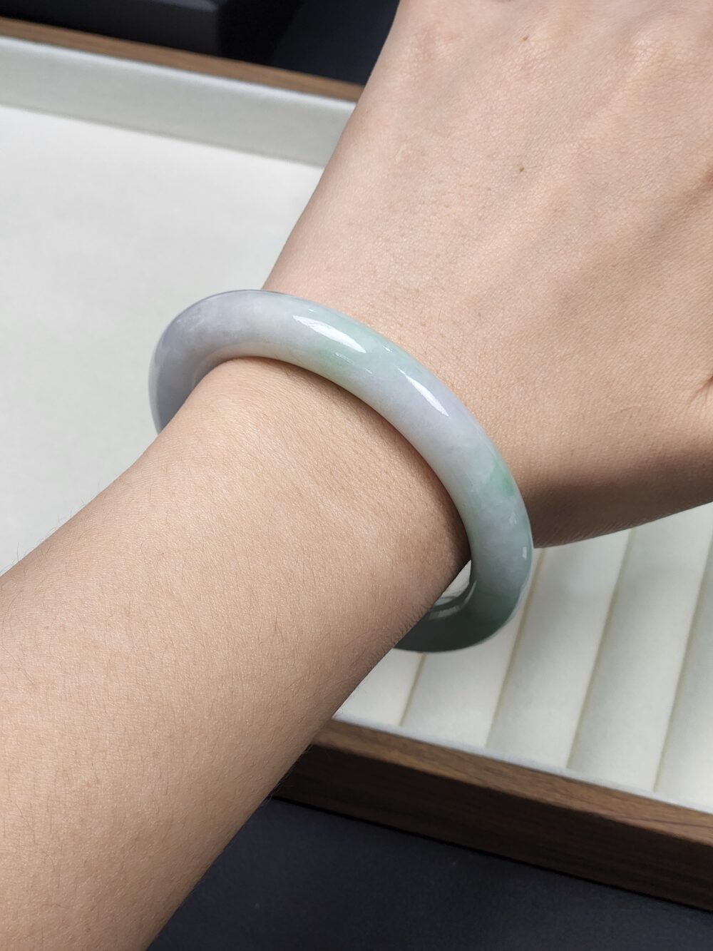 Be the first to review “Size 53.6 White with Apple Green Floral Burmese Jade Bangle (FC0063)”Cancel Reply