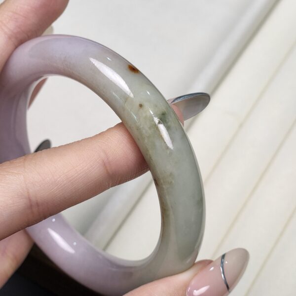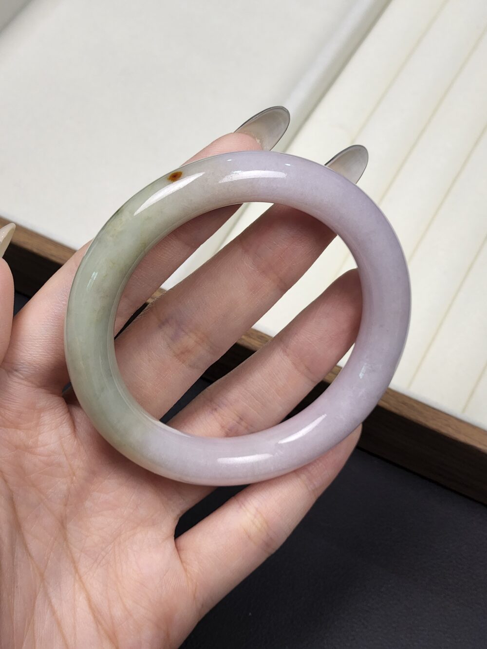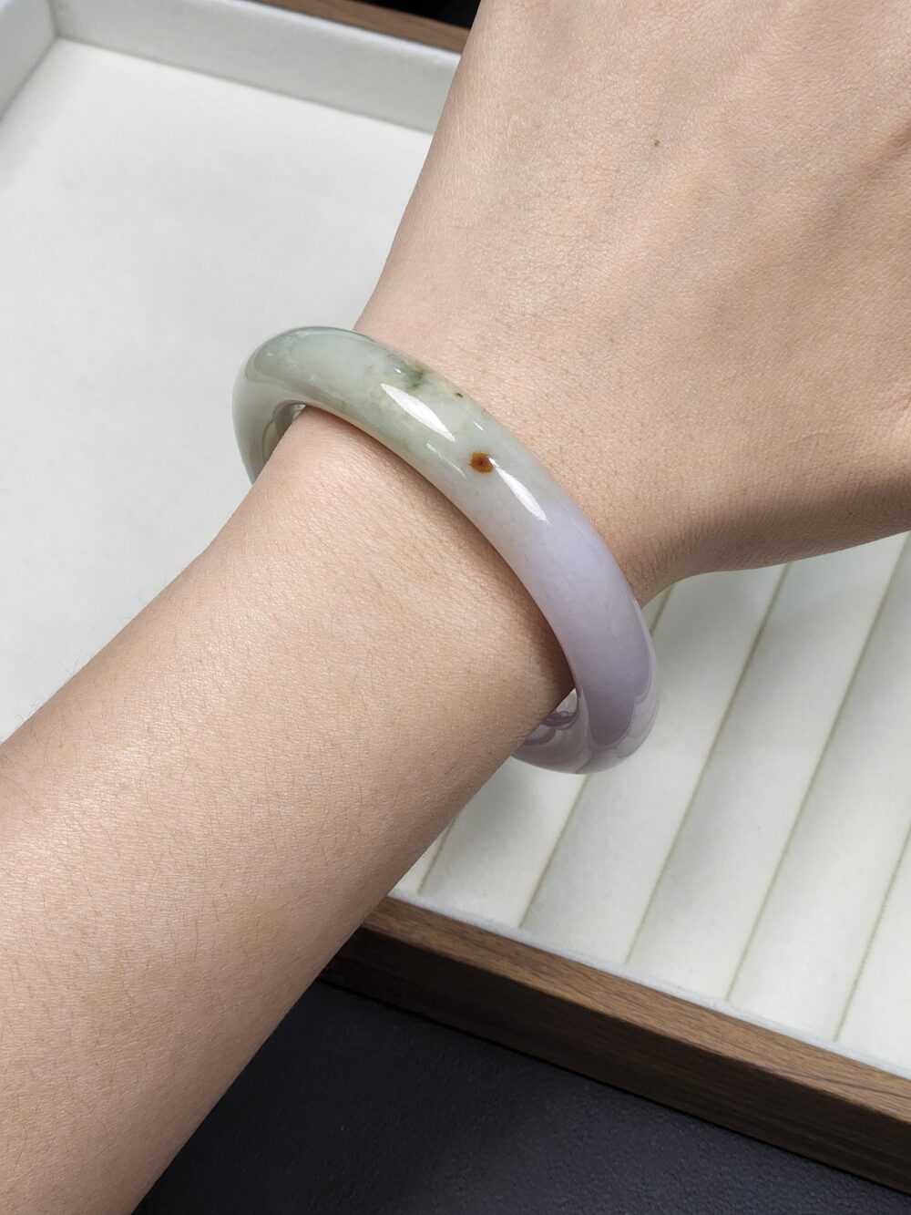 Size 55.2 Half Bowl Pastel Pink Lavender & Green With Red Floral Burmese Jade Bangle (DZ0113)