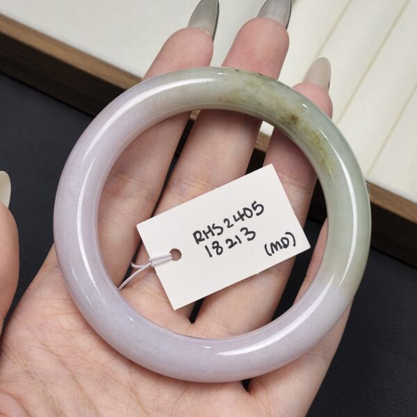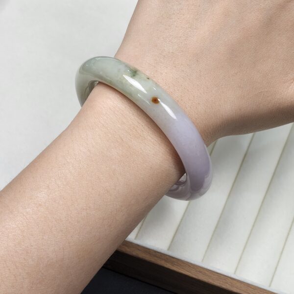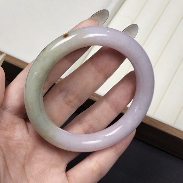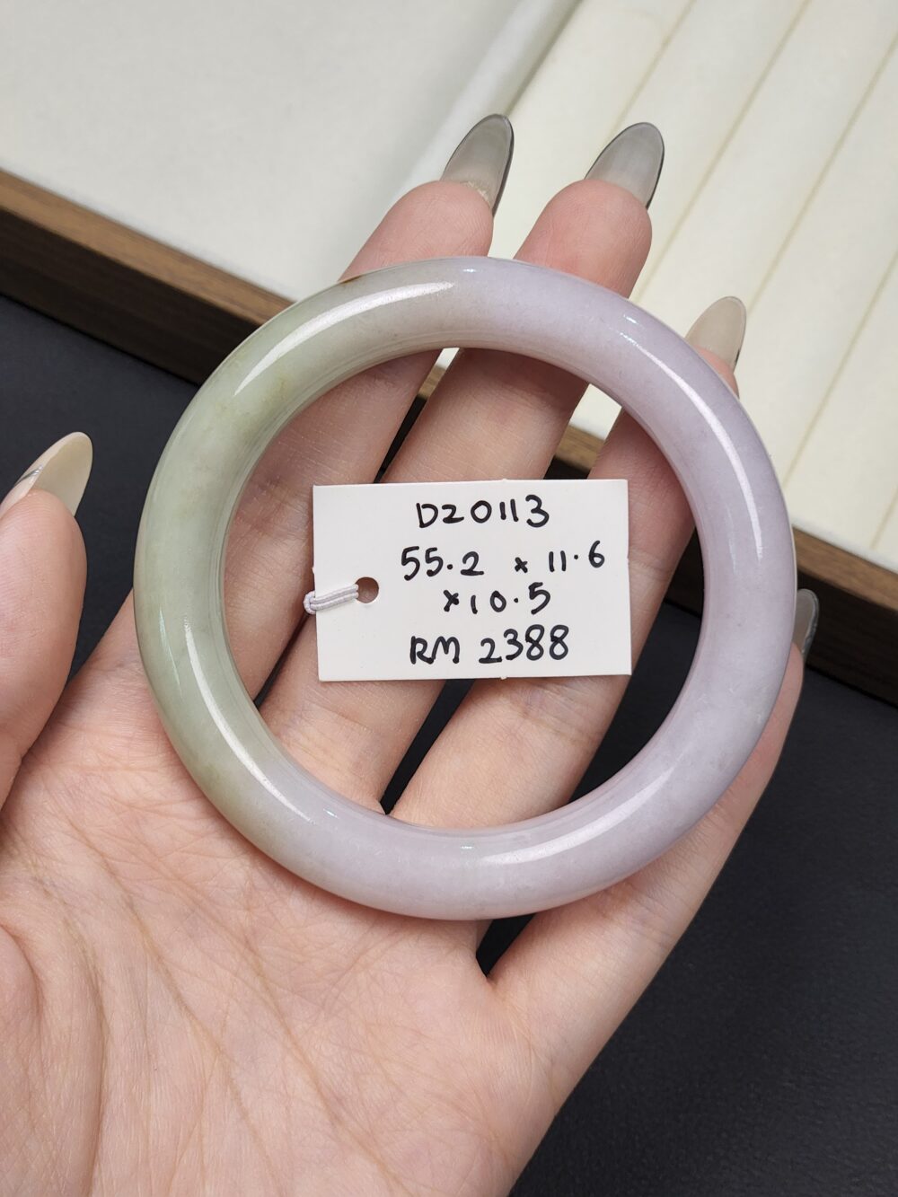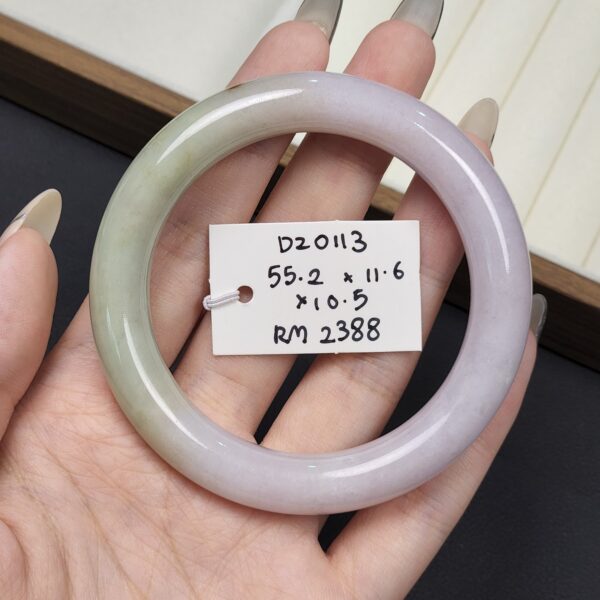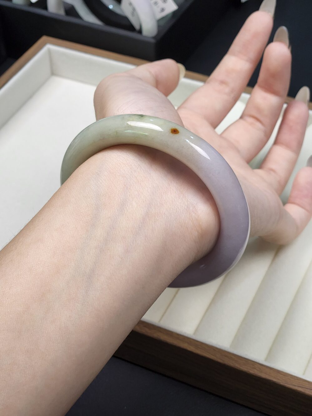 Size 55.2 Half Bowl Pastel Pink Lavender & Green With Red Floral Burmese Jade Bangle (DZ0113)