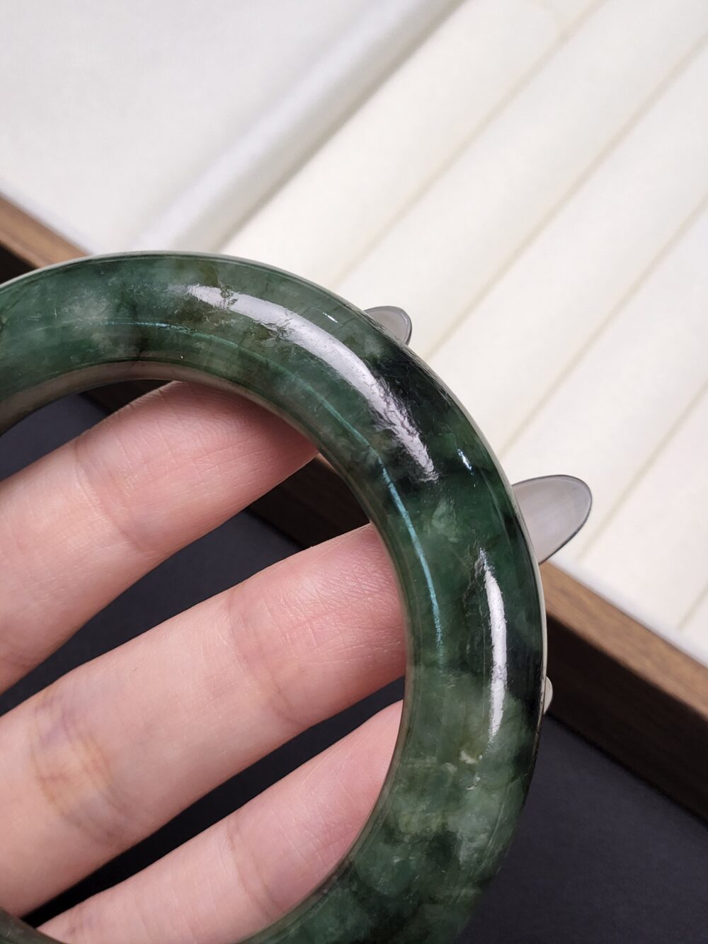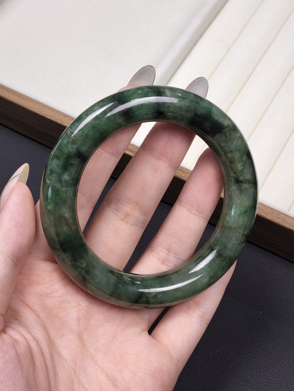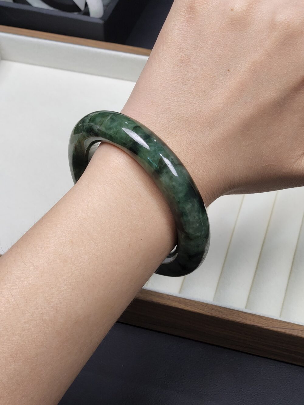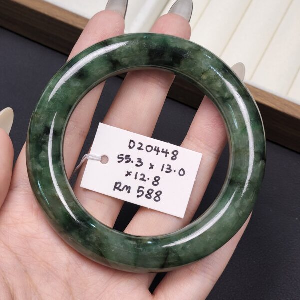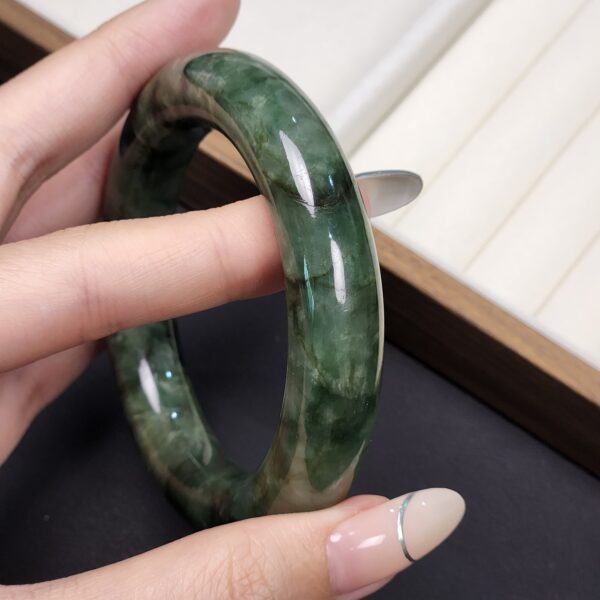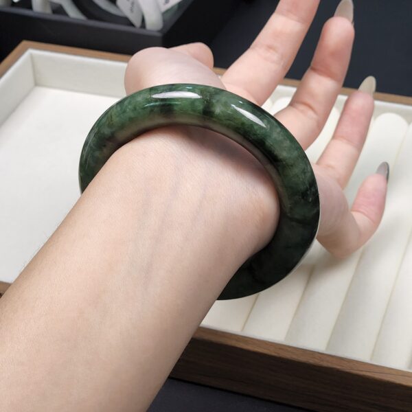 Size 55.3 Dark Forest Green with Black Floral (Mix Mineral) Burmese Jade Bangle (DZ0448)