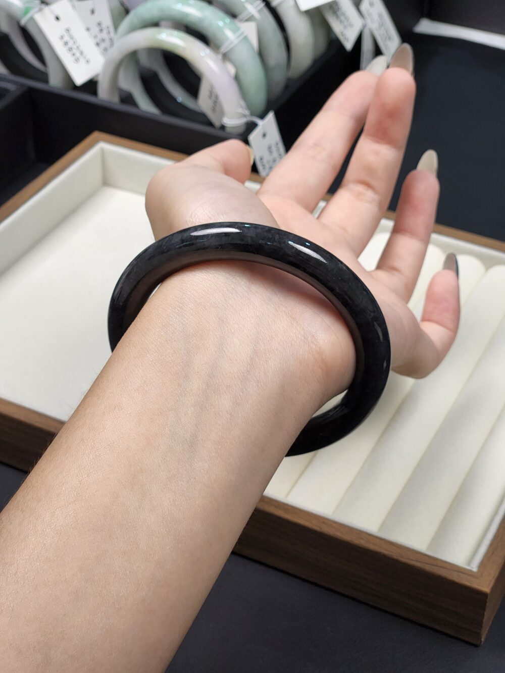 Be the first to review “Size 60 Mystic Black Wuji Burmese Jade Bangle (DZ0474)”Cancel Reply